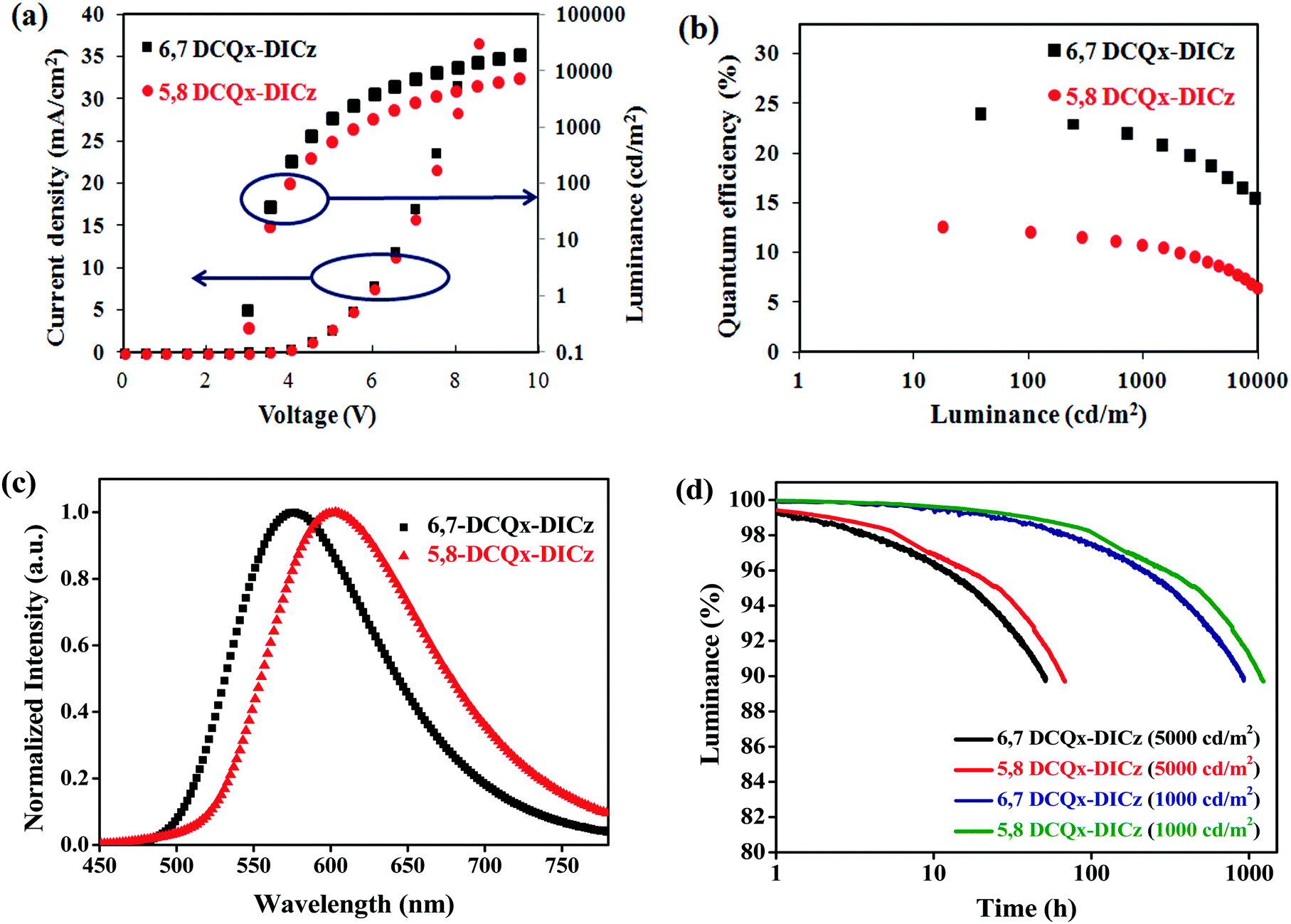 High Efficiency And Long Lifetime Orange Red Thermally Activated Delayed Fluorescent Organic Light Emitting Diodes By Donor And Acceptor Engineering Journal Of Materials Chemistry C Rsc Publishing Doi 10 1039 D0tcb